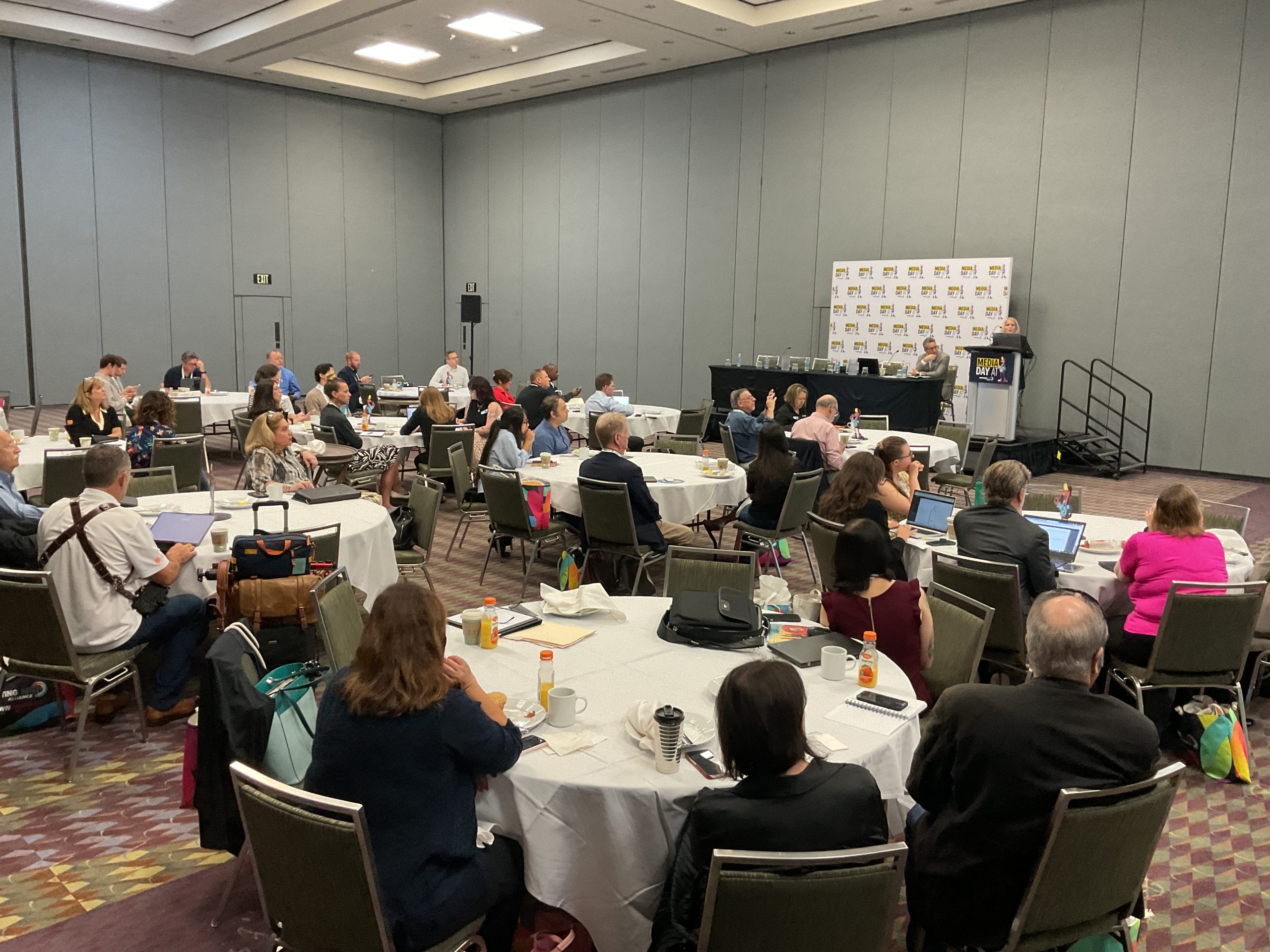 Canon U.S.A. (Booth 2642), the title sponsor of PRINTING United Expo, took the stage following Safran and Cross as the first sponsor company to give the media a sneak peek of what the company is showcasing at its booth. Bob Barbera, fellow, customer marketing production, led the discussion with a look at Canon’s portfolio of printing solutions, many of which are on the show floor. This year’s theme, “Move Forward with Canon,” complements the number of solutions highlighted, including the varioPRINT iX1700, the varioPRINT iV7, and the new Colorado XL.
