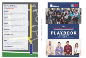 In the production area, customers helped print, bind, and trim the finished piece themselves. The result was a personalized copy of the Document Solutions Playbook — a guide to doing business with the in-plant. This gave attendees a tangible reminder of the services available and a clear reason to bring future work back to Document Solutions.