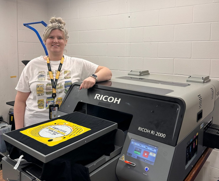 “We’re really looking forward to being able to get more printed garments out to the campus — to the sororities, the fraternities, the intramural sports — and just being able to do all kinds of things for the different campus groups,” says Christy Pearce, Production, Business Office and Campus Copier Program manager.