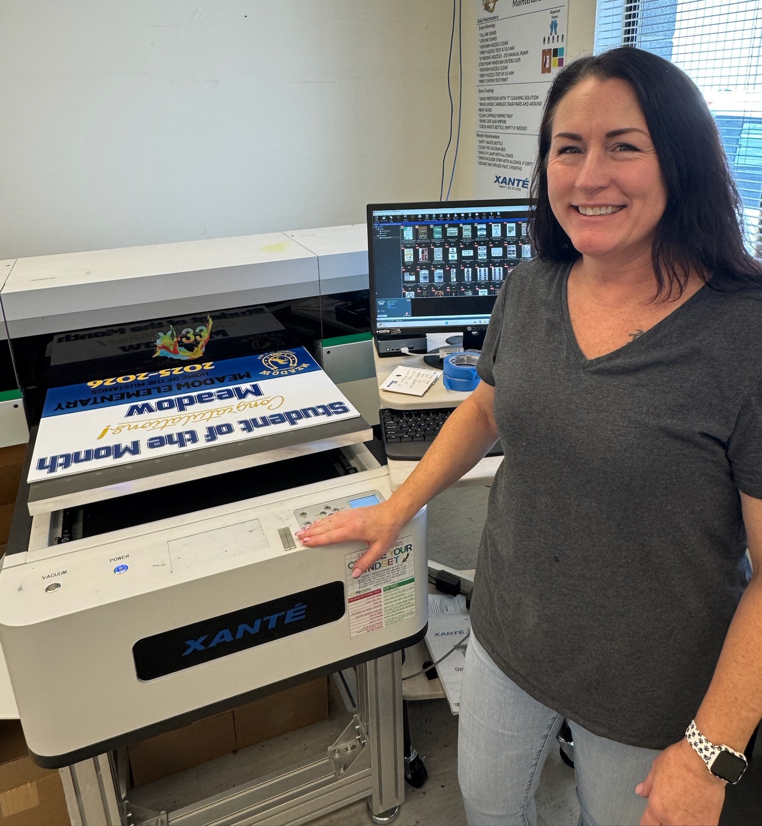 The Xante X-33 flatbed printer is used to print anything from yard signs to plastic door plates and plaques.
