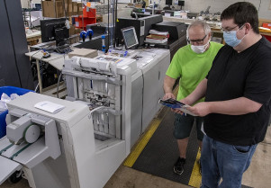 “COVID signage has been keeping us busy for a long time,” Wallis says. Hospital visitation policies keep changing, she says, so the in-plant must quickly reprint those signs, then pack and label them for Geisinger’s 10 hospital campuses and other facilities, and get them to the couriers for delivery.