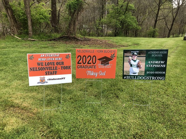 Besides providing a needed service to students to ease some of their disappointment, the yard sign work is giving the in-plant some needed business at a time when its usual print work has “gone to sleep,” Arning says.