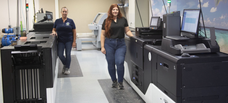 Though each 15000c is 23.5 ft. long, the shop was able to fit them both in the space formerly occupied by the Rialto. A single operator can run both inkjet presses. Having two 5,000-sheet stackers on each allows them to run longer unattended.