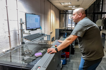 Despite the lack of external light, the Leeds, England-based print shop is at the heart of the campus, and amid an exciting install of a raft of new equipment.
