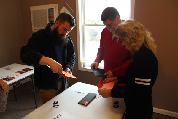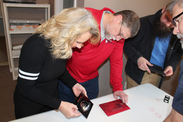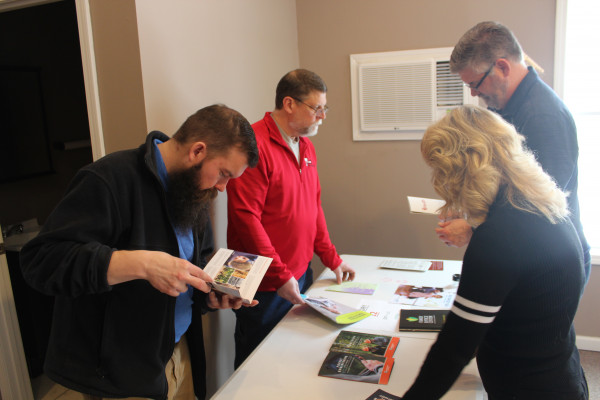 Forrest McGuire, Bobbi Francis, Ben Fowler and Curt Hastings examine entries in the calendars category.