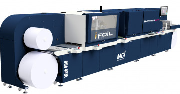 Konica Minolta's JETvarnish 3D Web 400 is the only single-pass spot-UV and hot foil embellishment reel-to-reel system available in the market.