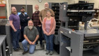 Mark McCarty (left) and his team show off their new Kodak NexPress 2500 in 2014. From left: Kaye Hendershott, Doug Evans, Steve Townsend and Rick Patton.