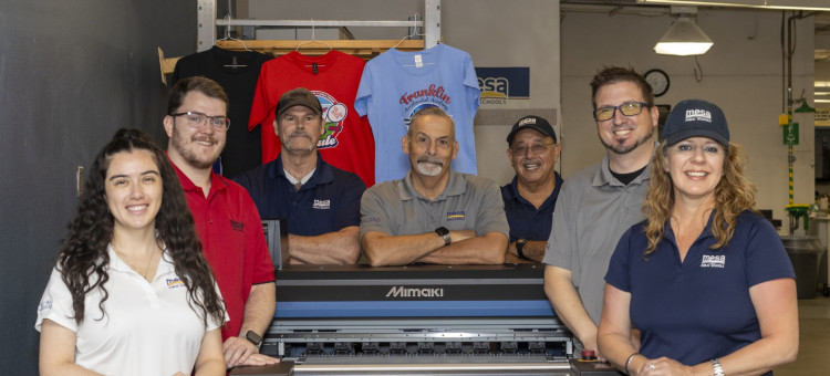 While the in-plant is working to elevate its existing offerings, it also isn’t shying away from new opportunities. In February, the 10,000-sq.-ft. shop added the Mimaki TxF 150 direct-to-film (DTF) printer/shaker. This addition — plus the investment in a Stahls’ Hotronix heat press — were inspired by a visit to nearby Arizona State University’s in-plant, which Barz says is having huge success with the machines.