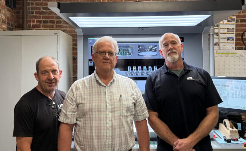 Gregory Curtis (center), printing production supervisor at University of Alabama Birmingham Printing and Mailing Services, is flanked by operators Scott Sandford (left) and Mark Mays.