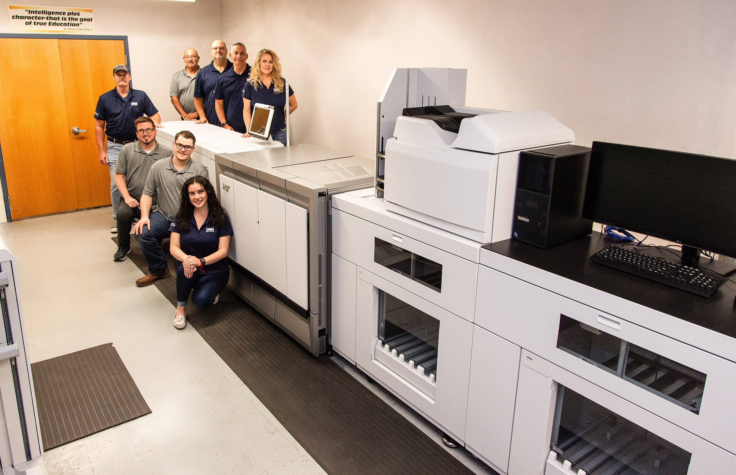 With the Canon varioPRINT TITAN at Mesa Public Schools’ in-plant are (front, from left) Cory Nichols, Raymond Foster, Ky Browe, and Anabella Betance. Back, from left: David Aranda, Matthew Scoutten, Joseph Barz, and Diana Ciani-Cebuhar. | Credit: Mesa Public Schools