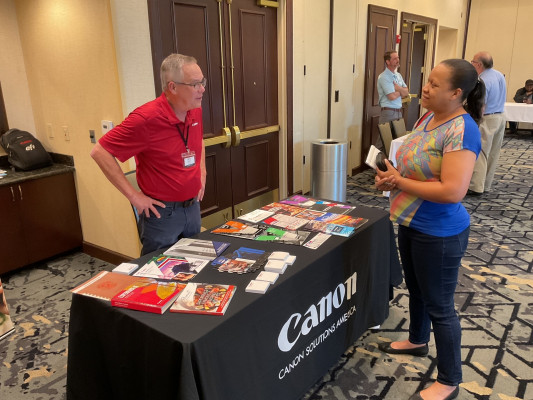 Other sessions covered different types of adhesives used on graphics, and ways in-plants can add value with wide-format, embellishment, and security inks. Mike Strand of edu Business Solutions led a discussion on Web-to-print systems in which he showed some in-plants’ ordering sites and discussed various features. He also previewed an apparel ordering module he is working on.