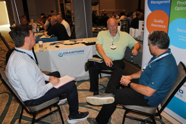 Mayo Clinic’s Bret Johnson talks with Crawford Technologies representatives at one of the 1:1 meetings.