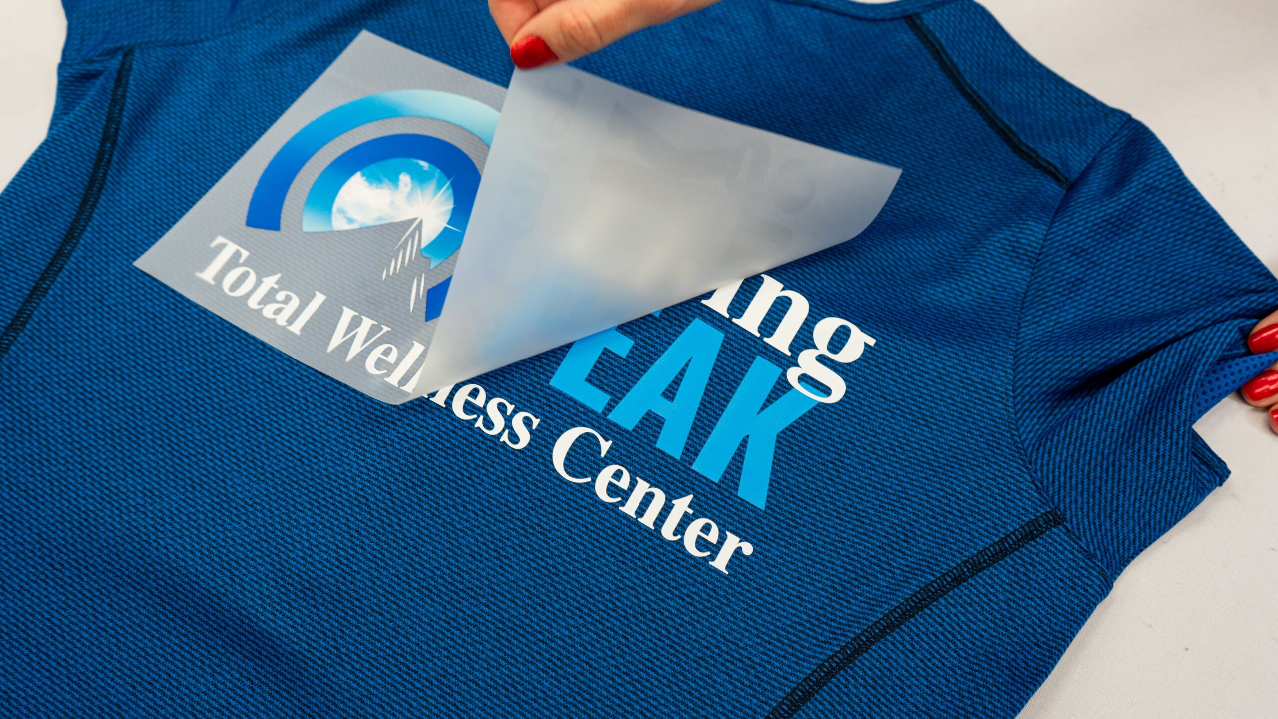 DTF printing is both a digital printing and transfer process that works for several different fabrics, including polyester, cotton, blends, nylon, denim, leather, and more. Using an inkjet printer, the CMYK design is printed onto a special PET film prior to a white ink layer, and then a special adhesive powder is applied on top, which is then cured. The design is then cut from the sheet and ready for pressing onto the garment. DTF transfers can fill the gaps for smaller jobs and can handle multiple colors with ease.