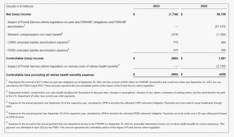 This news release also includes controllable (loss) income excluding all retiree health benefits expense which is not calculated and presented in accordance with GAAP. This non-GAAP measure is calculated as controllable (loss) income adjusted for the impact of the retiree health benefits expense associated with normal costs which were eliminated by the PSRA in April 2022.