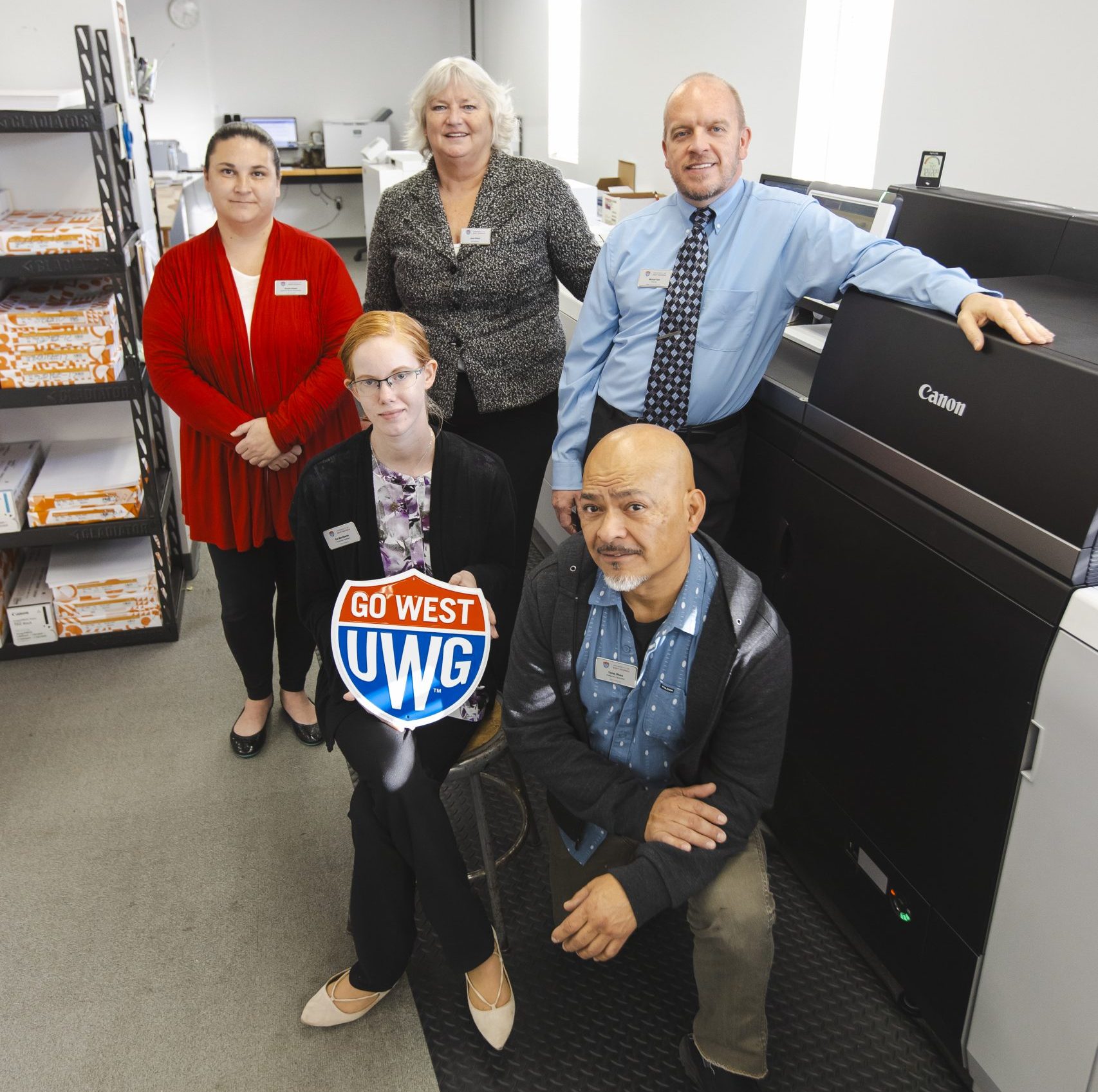 Located on the east side of UWG’s campus, in a 9,393-sq.-ft. facility with its own loading dock, UWG Print & Mail Services has been serving the university since 1965. Its four print and three mail employees are supplemented by a temp worker, one student assistant, and two interns, who receive first-hand, real-world experience (see sidebar).