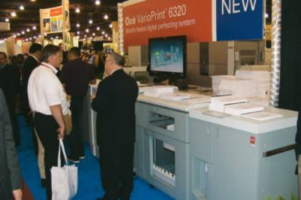 The centerpiece of Océ’s booth was the new VarioPrint 6320 Ultra perfecting system, which prints 306 letter-size ppm. Océ ScreenPoint technology provides intelligent screening and tunable print quality. Targeted at digital book printing operations, it can produce 2,950 book blocks (6x9˝) in a three-shift operation. At On Demand, the 6320 was shown with the new Océ DFS30 tape binder, which can bind from 10 to 120 sheets.